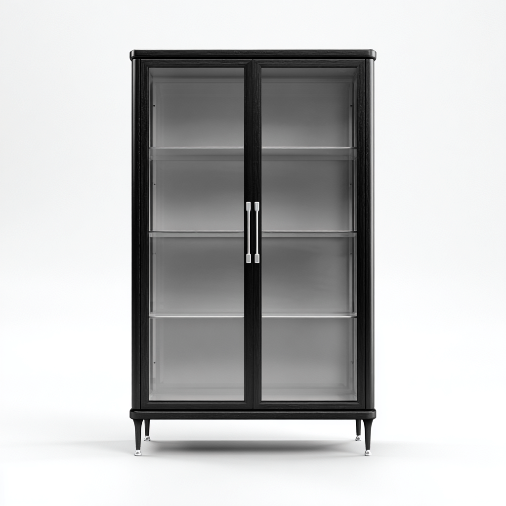 Les étagères intérieures offrent un espace de rangement structuré et accessible. Les portes vitrées protègent les objets tout en facilitant leur mise en valeur.