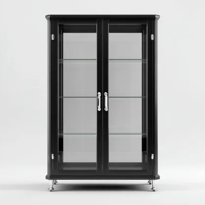 Les portes vitrées facilitent la mise en valeur des objets tout en les protégeant de la poussière. Les étagères intérieures offrent une organisation claire et ordonnée pour différents types d'objets.